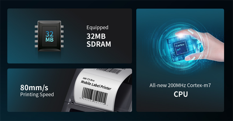Equipada com um processador de alto desempenho e 32MB SDRAM, a impressora de etiquetas de prateleira HM-T3 PRO oferece impressão de alta velocidade a 80 mm/s. Seu modo dual Bluetooth 4.0 garante uma conexão estável e confiável, tornando-a uma impressora de etiquetas ideal para supermercados.